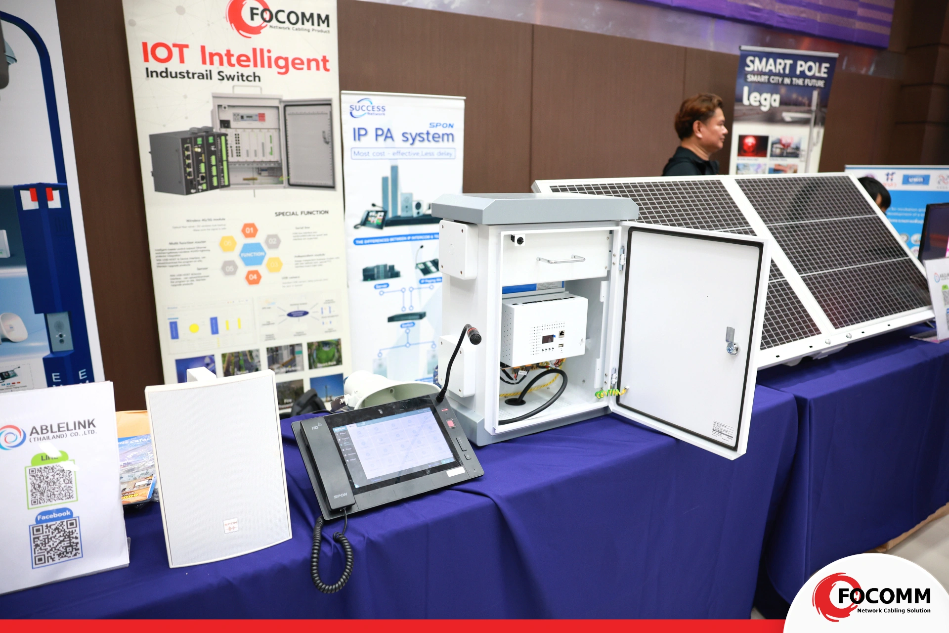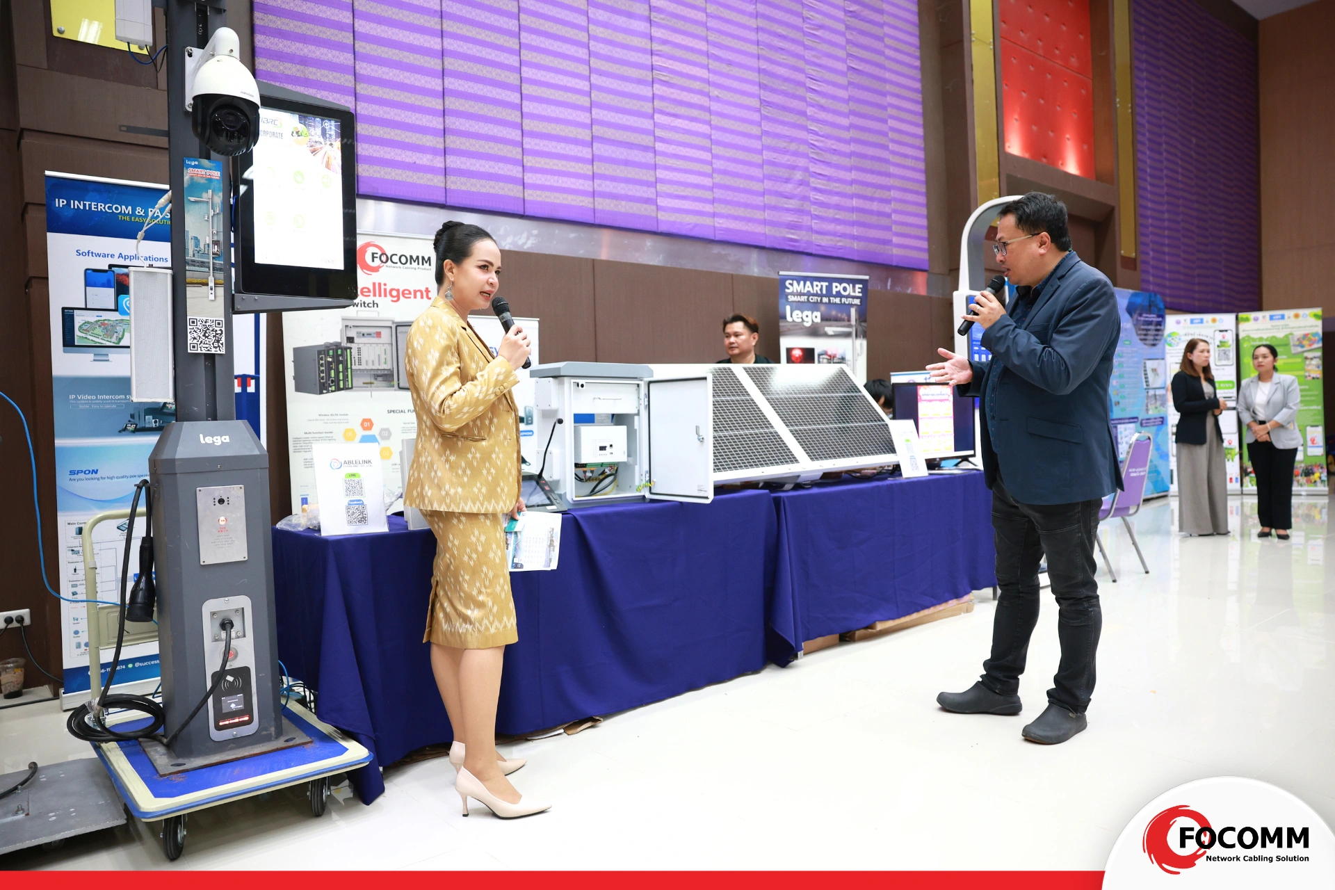 บริษัท โฟคอมม์ (ประเทศไทย) จำกัด ได้เข้าร่วมในฐานะผู้แสดงนวัตกรรมด้าน Smart City Showcase โดยมี คุณณัฐพล วลัยวิทย์ CEO ของบริษัท นำเสนอเทคโนโลยีโครงสร้างพื้นฐานดิจิทัล อาทิ Smart Pole, ระบบสายสัญญาณ, ระบบพลังงาน และโครงข่ายอัจฉริยะ ซึ่งสามารถนำไปปรับใช้จริงในหลายพื้นที่ นอกจากนี้ยังมีการเข้าร่วมของ นางวิไลพร นิพัฒน์ รองนายก อบจ.กาฬสินธุ์ พร้อมด้วยข้าราชการและพนักงาน สะท้อนถึงความร่วมมือจากภาคท้องถิ่นในการพัฒนาเมืองอัจฉริยะร่วมกับสถาบันการศึกษาและภาคเอกชน